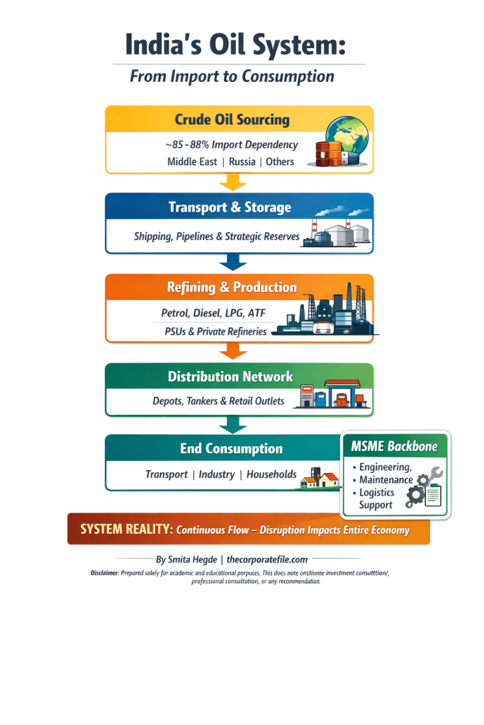 India’s oil system operates as a continuous, interdependent chain: